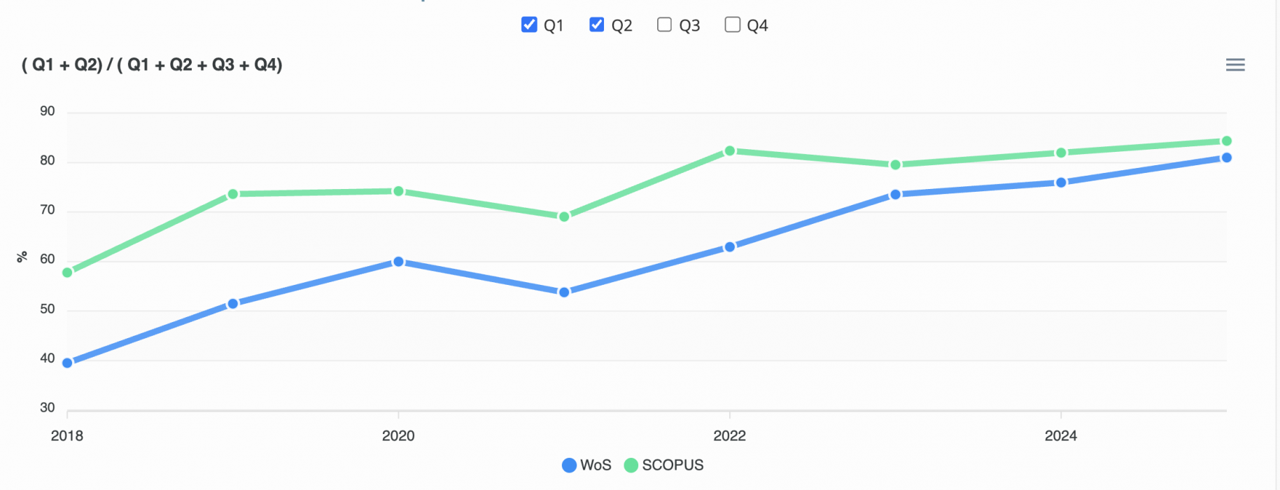 2018-2025 yılları arası yayınlarda (Q1+Q2)/(Q1+Q2+Q3+Q4) oranı